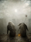 Before long, there was a line of animals stretching around the corner, and I felt like Etude and I were royalty, receiving gifts and entreaties from our noble subjects. We were polite to them, and they were polite to us. There was much bowing and speaking of ancient oaths. Soon, as word spread to the wilds that a true shaman had appeared in the city, all semblance of order was dropped. As their numbers grew, the animals took to frenzy, agitated to excitement by the mere chance to see the strange bald man who remembered the old ways, when men and beasts were neighbors. Birds of all stripes and colors swooped into the alley and dropped prizes. Bullfrogs croaked and hopped laboriously forward amid a tangle of rats and mice and more than a few voles who scurried back and forth so quickly that it was very hard to see them. Each deposited before the feet of the shaman the shiny detritus of the city—metals and papers and strange cut rocks.