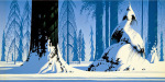 Even if you’ve never heard his name, you know the work of American painter and illustrator Eyvind Earle, who not only gave the Disney films of the 1950s their distinctive look but also inaugurated an entire genre of holiday greeting cards, whose style you’ll recognize in some of the images below.