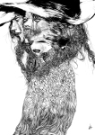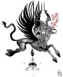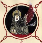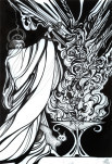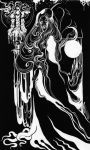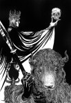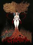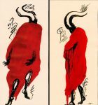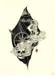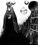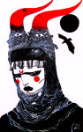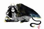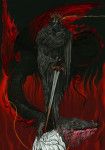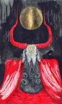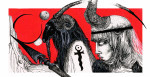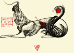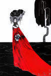 Luciana Lupe Vasconcelos (b. 1982) is a self-taught illustrator and former tattoo artist from Brazil whose highly stylized works explore motivating mythos of dark ritual, often with the brilliantly simple color scheme of black and blood red.