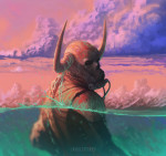 Presumably this woman has been racing inside some sci-fi mecha or spacecraft, and she’s quite hot. She’s sweaty and exhausted from being under that helmet in some kind of cockpit moving at ungodly speed. What’s more, unlike many images, her breasts, while full, are not overly large, and she’s showing less skin than you’d see at the beach. The artist uses her form-fitting suit, practical attire for a sci-fi racer, to reveal her taut muscles.