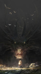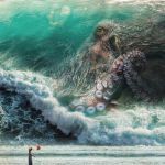 And then I saw the chair. Benjamin’s precious cargo. Only this picture was no mere photo, as were all the others. It was a portrait, a painting in oil and at least four feet high with a frame of pure gold that looked like it had been pilfered from the halls of Versailles. In it, the chair was cracked—and gloating. To one side, I saw a black and white photo of Saycroft House flooded by the ocean to a height of three feet, and that was it. For before me the entire wall of the house was missing. Beyond was the water of the Chesapeake, which had risen in catastrophe to lap at the house, exactly as in the picture. It seemed like it had been doing so for a very long time—long enough to have pulled down the windward wall. The floorboards under my feet poked out, cracked and jagged, over empty space. Below were the two lower floors of the house, while far out to sea, so distant as to be shrouded in haze, was a monster the size of a mountain. It strode slowly northward, up the bay, as if moving in slow motion, its upper half shrouded in orange hazy clouds. Its massive tentacles, too numerous to count, alternated between the earth and its mouth as if it were a grazing elephant.