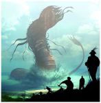 It was grazing, in fact. It was too far to see clearly, but somehow I knew then not only that it was grazing, but that it was grazing on people, plucking them from huddled crowds hiding under the ruins of skyscrapers. It slid its tentacles into the gaps of the buildings like the tongue of an anteater through a termite mound. It wrapped up whole families and pulled them screaming to its seven-holed maw. What they became after stewing in its intestines, what emerged dripping and snarling from its anus, I cannot begin to describe. Pray only that you never meet one.