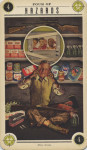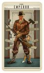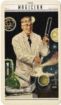 The deck’s creators have magnified that artfully by choosing the midcentury period, when we were moth blithely unaware of the monsters stirring beneath us. Hence The Fool, a 1950s business man walking blissfully through an erupting graveyard, wreath in hand. Or cigarettes as The Devil.