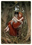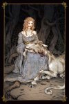 All I could find about the artist is what she has on her DeviantArt profile and a defunct Blogger. She apparently lives somewhere here in Kansas and has a couple kids and doesn’t seem to be working professionally, which would be too bad, if true, because this is amazing stuff, especially the tarot cards — Strength, Moon, and Star major arcana — and the illustration of Eowyn and the Nazgul.