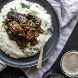 Slow Cooker Guinness Short Ribs with Cheesy Cauliflower Mash.