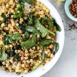 The post 20 Minute Spicy Garlic Spinach Pasta with Chickpeas. appeared first on How Sweet Eats.