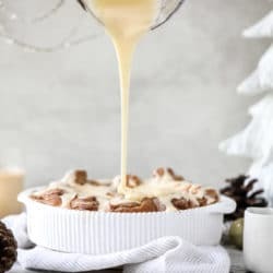 Whisk ingredients together until a smooth glaze forms. If it’s too thick, add more eggnog 1 teaspoon at a time. If it’s too thin, whisk in more sugar a few tablespoons at a time until desired consistency is reached.