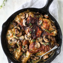 Smothered Skillet Chicken with Thyme Butter Mushrooms.