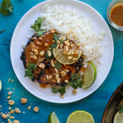The base of flavor here uses my favorite Thai marinade – of course. I can’t seem to ever use anything else when I want a Thai-inspired dish and it’s just SO good. Super peanutty and coconutty! Perfection in my book.