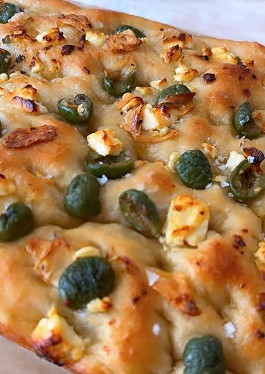 Olive focaccia that was great in theory but so dry and chewy.