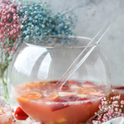 AHHH guys. I am so excited to finally share this. Last month when I was developing a bunch of recipes in preparation for the kitchen remodel, we made a ridiculous amount of cocktails in one day. I used tons of strawberries since I’m knee deep in a strawberry obsession at the moment… and this punch took the cake.