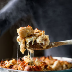 Cheese? Oh hi, you’re talking to the queeeen. I like a mixture of three cheeses, plus finely grated parmesan for topping. I tend to go with provolone, mozzarella and fontina, all freshly grated (this makes a ha-yuge different in melt quality!) and if I only have two on hand, that’s fine too. But definitely a mix.