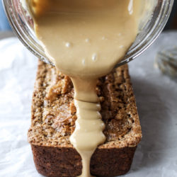 Not surprisingly whatsoever, the glaze is my favorite part. It’s embarrassing really, assuming that anything on earth could make banana bread taste better, but I have found it. For me, I’ll tell you what doesn’t work: nuts. No nuts in my bread. Or my cake. Or my dessert, forever ever.