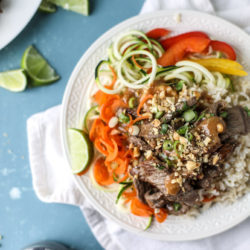 It’s fresh and delicious and fairly healthy and you could make a million substitutions based on what you’re craving. Rice noodles? Let’s do it! Lettuce wraps? Even better.
