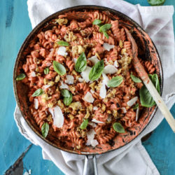 30 Minute Tomato Cream Pasta with Grilled Cheese Crumbs.