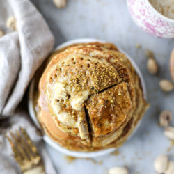 Pistachio pancakes. Freaking pistachio pancakes! Why haven’t I done this yet and why am I not eating them at this exact moment, like every minute for the rest of my life?