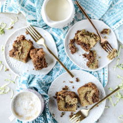 Anyhoo. I love zucchini bread and figured that it had to be even better with a cinnamon sugar swirl in the center and a crumbly streusel on top. Let’s be real, what ISN’T better with a cinnamon sugar swirl in the center and a crumbly streusel on top??