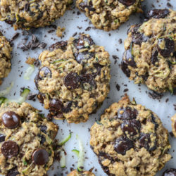 Stir in the zucchini and chocolate chips. At this point, I like to stick the batter in the fridge for 30 minutes or so.