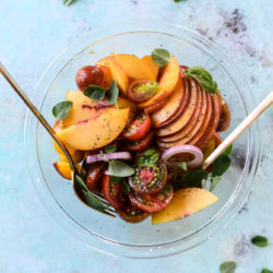 This crunchy on the outside, soft on the inside rich and buttered toast is so flavorful and gives a wonderful texture to this bowl of summery produce. I adore the combination and it adds the perfect bite to the meal – something a little extra to feel satisfied.