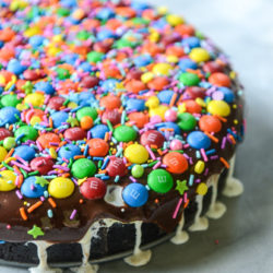 I’ve partnered with M&M’S again to create a fun birthday-inspired dessert that you can share with all your invisible internet friends just like I am today. You’re never going to see me saying no to rainbow colored chocolate candies, uh uh.