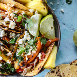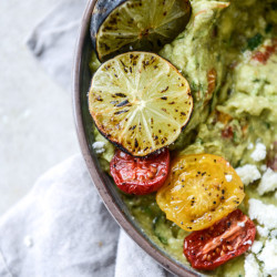 It was only natural that they would get swirled into my guacamole, right next to some charred lime. And you know how delicate and juicy the roasted tomatoes become? It’s almost like a super fresh sauce swirled into the dip and combined with crumbled queso fresco, the texture and flavor is out.of.this.world.