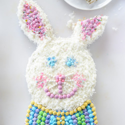 Confetti Coconut Classic Bunny Cake with M&M’s.