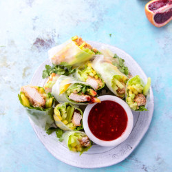 Crunchy Chicken Spring Rolls with Blood Orange Dipping Sauce