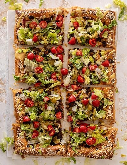 This cheeseburger puff pastry pizza is fantastic. Browned ground beef, my classic house sauce, sharp cheddar, pickles, lettuce, tomato and more. Not to mention a super crisp crust.