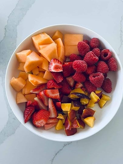 A year later this is still my favorite breakfast. Plain greek yogurt, fruit, grapenuts, honey.