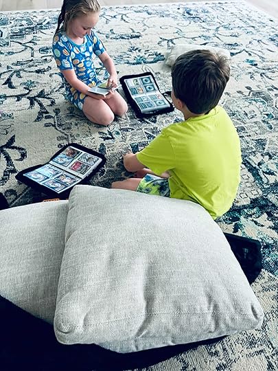 Max teaching Emilia all about pokemon. And she’s wearing his hand me down PJs. My heart!
