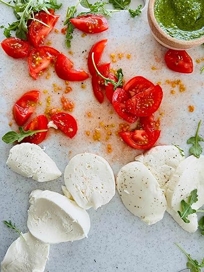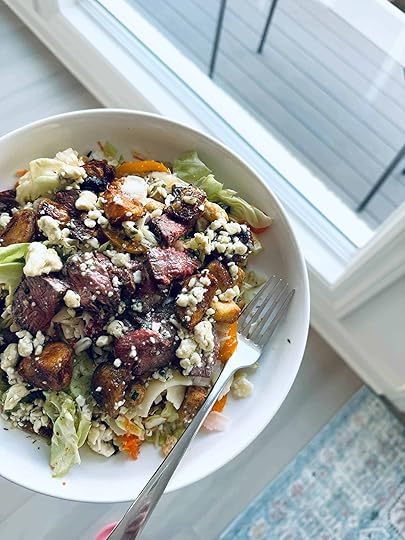 This week on the blog I shared this grilled chicken caprese lunch bowl. I also shared this crispy potato gruyere pizza, the best cucumber spritzer and some grilled salmon with mango salsa.