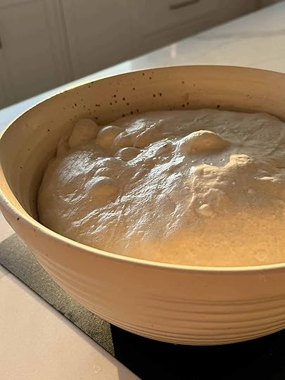 Emilia just helped me stir some dough for sourdough focaccia!