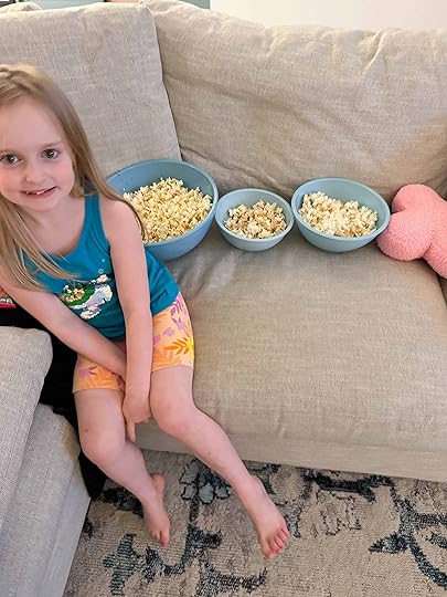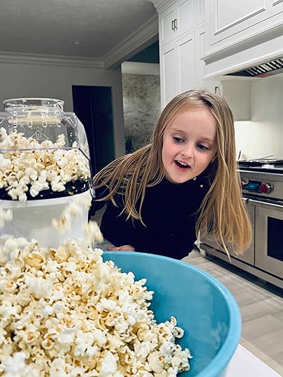 We had a popcorn taste test. We made regular popcorn, then cake batter, then cinnamon toast.