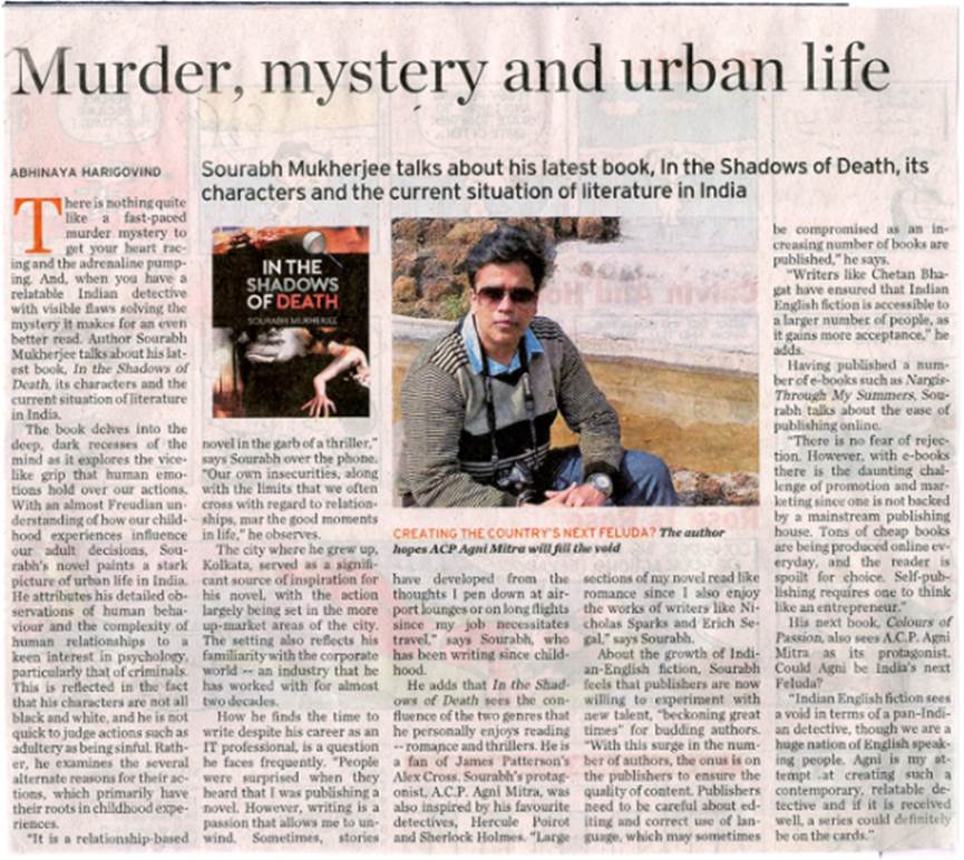 The Hindu (1)In the Shadows of Death completes 5 months and I thought it would be worthwhile to summarize the media mentions for my work.