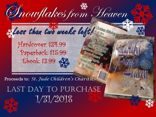 Balance of Seven is proud to have been involved in the Christmas charity anthology, Snowflakes From Heaven. Eleven wonderfully talented authors came together to write the stories for this beautiful anthology, including two of Balance of Seven’s newest additions: our new Publisher and fiction author, D. Y. Freeman, and our new Urban Fantasy author, Logos Peregrin. In addition, Dorothy Tinker, our Managing Editor, had the pleasure of formatting the anthology. All proceeds go to St. Jude Children’s Hospital. Copies can be purchased through the following links: