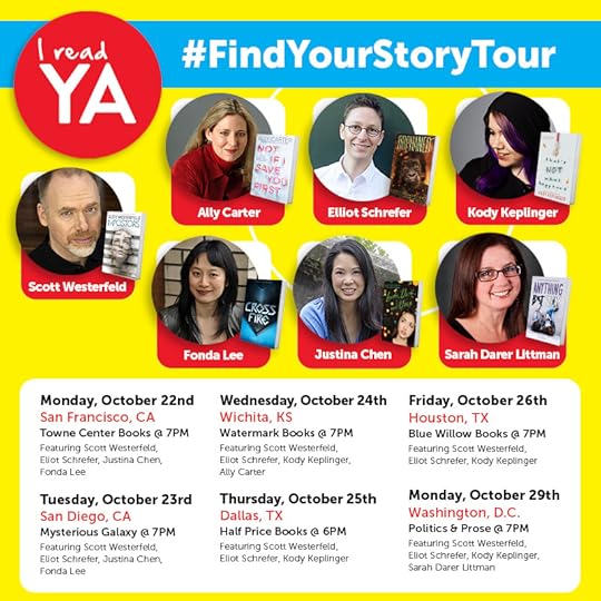 I’m going to be part of two stops on Scholastic’s Find Your Story Tour this October, along with Scott Westerfeld, Ally Carter, Elliot Schrefer, Kody Keplinger, Justina Chen, and Sarah Darer Littman. You can find me in San Francisco at Towne Center Books on Oct 22, or in San Diego at Mysterious Galaxy on Oct 23.