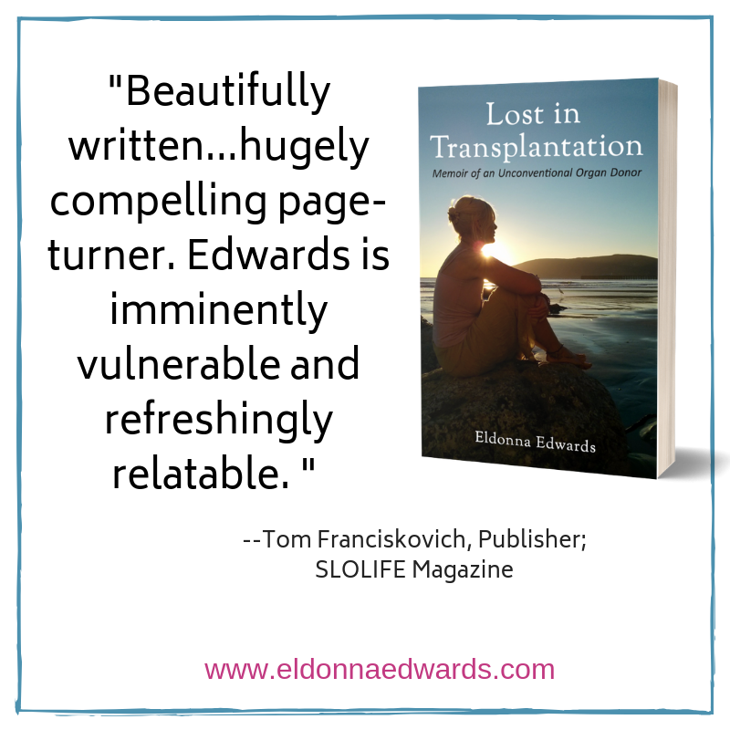 Eldonna Edwards grew up in a large family nestled between cornfields and churches in the provincial Midwest. She eventually escaped the harsh winters, moving to California where she expanded her career from journaling facilitator to author to beloved writing instructor to keynote speaker. Her bestselling debut novel, This I Know, won over the hearts and minds of readers everywhere and was a Delilah Book Club selection. In her second novel Clover Blue (May 2019) Eldonna once again explores themes of otherness and belonging, and the true definition of home. She is also the subject of the award-winning documentary Perfect Strangers that follows one kidney patient and one potential kidney donor in their search for a possible match. Her 2014 memoir Lost in Transplantation chronicles this life-changing decision. Eldonna currently lives and writes in a tiny pink house with her best friend, Brer.