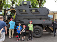 Welcome back to Monday. We had a wonderful first full week of summer break. The boys and I ran into a cool event at our local library. It was a park and play... or something like that. The local fire department and police force were out with all their cool vehicles. The boys got to sit in them and talk to the police and fire fighters. Their favorite part was trying to find who had the cool stickers.