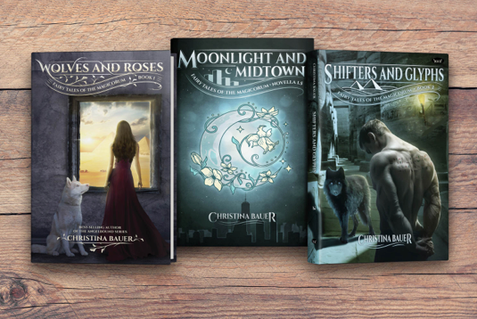 About The SeriesThe Fairy Tales of the Magicorum series includes WOLVES AND ROSES (Book 1), MOONLIGHT AND MIDTOWN (Novella 1.5) and SHIFTERS AND GLYPHS (Book 2, Fall 2018). Eight full novels are planned in total.—EXCERPT:“That’s why packs have Alphas,” says Knox. “You need to set her loose, and then, let her attack me.”