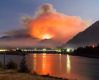 Forest fires are a common thing during the dry summer months here in Oregon. Some years are worse than others. Most the time we have enough rain to keep the fires to a minimum, but this year, it hasn't rained in months and the state is very dry.As usual, stupid people do stupid things and a huge forest fire started a little too close to home. The sky is filled with smoke. Ash is creating a thin layer of dust on the cars, and the air is thick with the smell of camp fire.