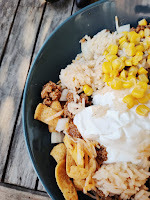 One of my favorite recipes is smothered Fritos bowls. Its like ground beef tacos on a bed of crunchy Fritos chips.Its salty and flavorful. A wonderful dinner.