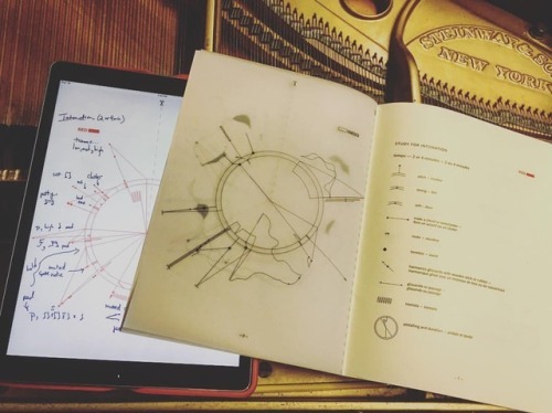 long post: in music school i would often sit in on the floor in the Cage section of piano stacks and leaf through scores. i really never played any of his music until after i left school; at the time i didn’t feel i had the authority or the right (which is a shame—and I discourage this mentality when I talk to younger musicians), but i loved to just sit there and look at the pieces. month after month i would come back to one particular score, “electronic music for piano,” sort of in disbelief that the score was actually the score—a scrawled-out list on hotel stationary with no explanation, rare for a composer whose music is typically copied meticulously, almost overexplained, and often looks quite beautiful on the page. the words (some crossed out) aren’t instructions per se—but rather objects, ideas, names (including his own) and other prompts. for years even after music school i kept checking up on that piece, in a way to see if something “clicked” for me, and in the last year i’ve communicated at length with james pritchett about the score, trading ideas but mostly listening to his truly insightful theories about it. starting last spring i began to put serious thought toward making a realization for performance that i could actually stand behind, and though every day something changes and something else occurs to me, on wednesday i’ll finally try it out in LA at the Broad.