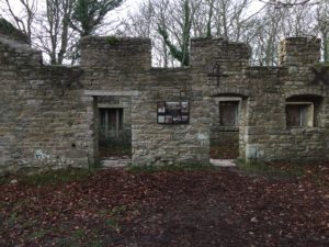 These days the pretty gray-stoned buildings are mostly gone or in ruins. Walls and rooves have toppled, but the quaint 13th century village church has been remodeled. The village’s old red cast iron phone box still contains a note from those far-off days, saying, “I am on war work. If you must use me be brief.”