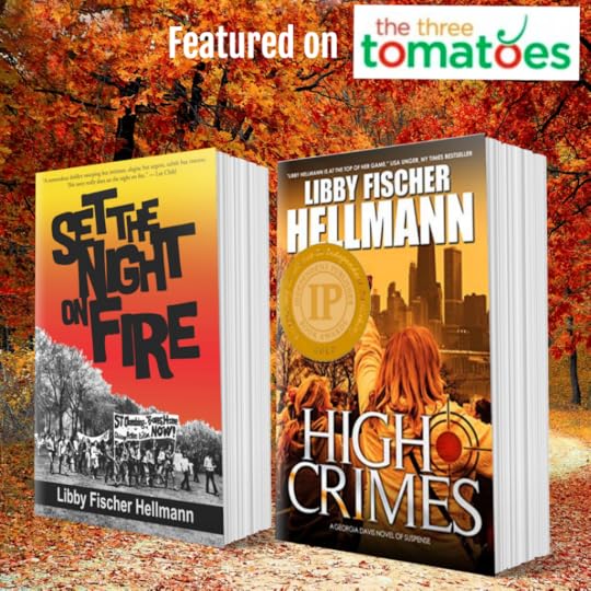 Finally, The Three Tomatoes, the “Insider’s Guide for Women Who Aren’t Kids” (Love that, btw), selected two of my thrillers for their Fall Reading List. Included are short reviews of SET THE NIGHT ON FIRE and HIGH CRIMES. Check out the reviews here… and… yes, you can get them at half-price on Overdrive all month! Again, both are perfect for book clubs and group reading discussions.