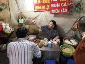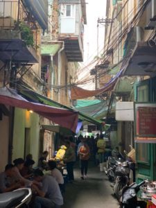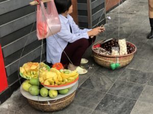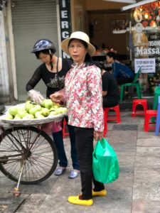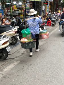 Below are Hanoi Street scenes. You still see women in the conical hats, lots of stores and impromptu shops on the streets, and the ubiquitous motor scooter, which are the predominant transportation for people in Vietnam and Cambodia. We’ll see more of these later.