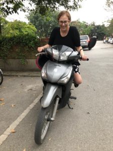 I think I mentioned that everyone in Vietnam gets around on motor scooters, and in the cities, they look and sound like a hive of bees. You see both men and women, and many carry their children as well. Some women cover their work clothes with an old skirt and wear gloves and long sleeves to protect them from the sun, and many wear masks for the pollution the motors throw out. I’m told the masks offer little protection.