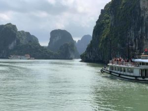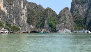 HaLong Bay, about a three hour drive from Hanoi, feeds into the Gulf of Tonkin. Yes, THAT Gulf of Tonkin. But today, there is no memory of a war or skirmishes with armed ships in the area. Today HaLong Bay is under massive development as a tourist resort. Most of the development is funded by China, including endless hotels and apartments that are half-finished and still empty.