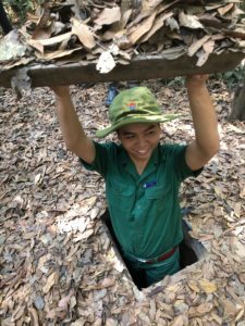 One of the highlights of the trip for me was a visit to the Cu Chi tunnels. During the Vietnam War, The Viet Cong (VC) dug tens of thousands of miles of tunnels, including an extensive network running underneath the Cu Chi district northwest of Saigon. They connect to the Ho Chi Minh trail, and we visited them.
