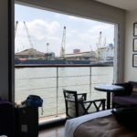 We boarded our river boat on the Saigon river, and boy was I surprised. It wasn’t large, but it had just been remodeled, and it was lovely. This was our room, the view outside, and the bath. Not cramped at all!