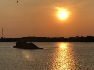 We spent most of our time on the top deck where there was an outdoor and indoor lounge as well as the dining room. This was our first river sunset.